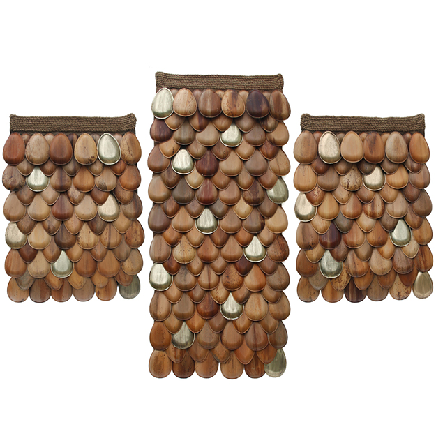 . Jute thread, recycled palm leaves.